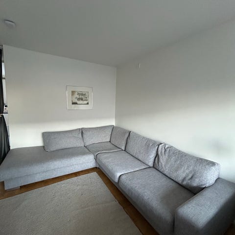 Kulmasohva ja rahi ovat täydellisessä kunnossa. Se on puhdistettu, desinfioitu ja kunnostettu.