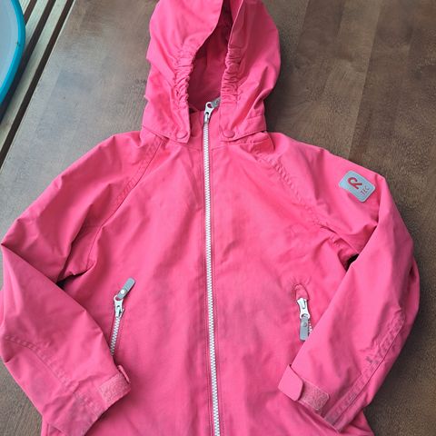 Napakkaa ja tuulenpitävää materiaalia oleva takki Reimalta. Verkkovuori. Koko 110cm. Säätönyöri helmassa. Irrotettava huppu. Valkoisissa osissa jonkin verran pinttymää, kts kuvat.