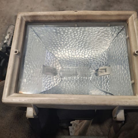 Halogeenilamppu pylväskiinnikkeinen, rakennuksille yms. Pölyinen