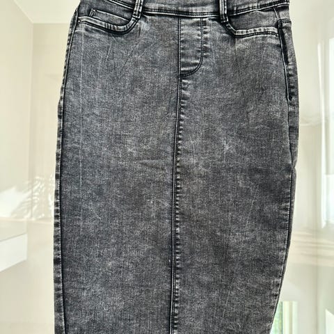 Ihanan kevyt hame, joka on denimin näköistä, mutta materiaali on 100% lyocellia. Koko 38 ja hyvä kunto. Kauniit röyhelöt helmassa.
