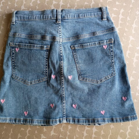 RESERVED Tyylikäs farkkuhame, jossa sukkanauhat. Koko 158. Nouto itse.