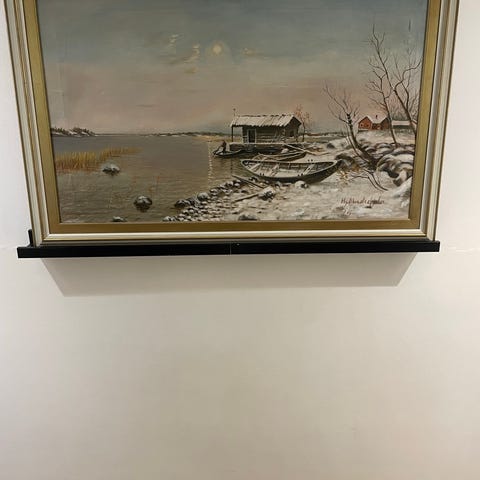 Kaupunginäkymä maalaus, joka on kehystetty. Maalauksen värit ovat lämpimät ja siinä on esitetty katunäkymä, jossa on rakennuksia ja torni. Kehys on yksinkertainen ja tyylikäs, joka korostaa teoksen visuaalista vaikutusta. Sopii hyvin olohuoneen tai toimiston sisustukseen.