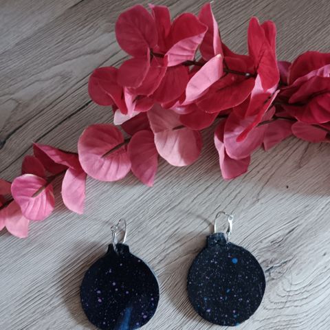 Pinkit korvakorut, poronnahkaa, nikkelitön, kromiton. Itsesuunniteltu ja käsityönä valmistettu.