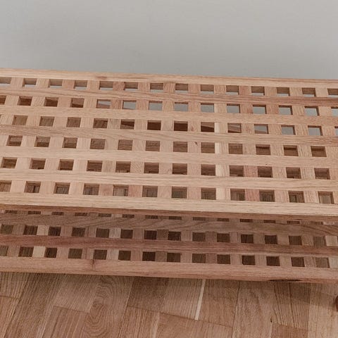Myydään puinen kenkäteline, joita voi halutessaan pinota useammankin päällekkäin.