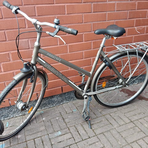 Tunturi , varustettu lastenistuimella ja etukorilla. Pyörä on musta, suunniteltu lasten ja kauppatavaran kuljettamiseen. Lastenistuin on pinkki, ja pyörässä on tukeva runko sekä mukava satula.+Vaihteet