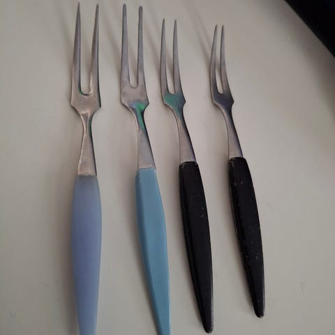 Mustapäiset haarukat ja veitset (6+6) -60-70-luvulta.