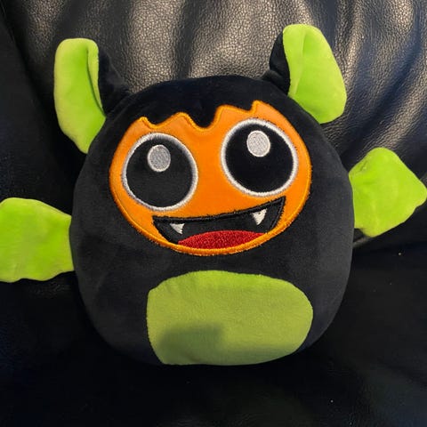 Myydään iso pehmolelu. Voi käyttää vaikkapa koristetyynynä tai vaikka lattiatyynynä. Pehmolelun pituus on noin 50cm. Pehmolelun päässä on ns. ”huppu”, jonka kääntämällä pehmolulla on silmät kiinni tai silmät auki. Pehmolelun sivulla on tarrakiinnitteinen tasku, joten pehmolelun sisään voi piilottaa aarteita. Tasku on melko iso, vaikka kuvassa näyttää pienemmältä. Pehmolelu on erittäin pehmeää materiaalia.