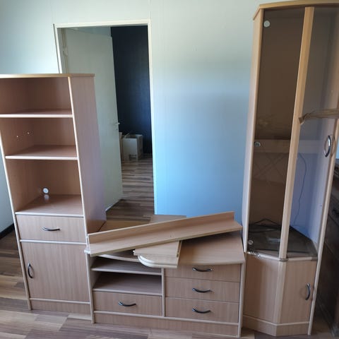 TV taso, jossa keskiosa ja irralliset kaapit. Samaa sarjaa kaikki osat.