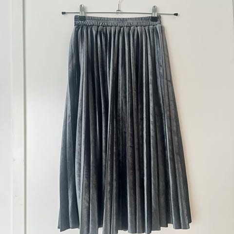 Valkopohjainen, vuorillinen vekkihame, jossa musta/ruskea- laikkuinen kuviointi.