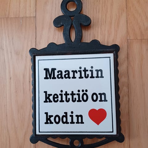 Ailin keittiö on kodin ❤️ Pannunalunen, taulu. Käytetty ja käyttöön sopiva täysin. Keramiikka/metalli. Vintage. Yleisilme siisti, ei uusi!