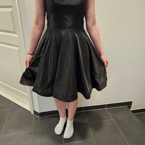 Zazabellan juhla-/rippimekko kokoa 32. Todella kimaltava glittermekko shamppanjan värissä. Nyörien avulla mekossa reilusti säätövaraa, Zazabellan kokotaulukosta löytyy helposti mitat. Kuvassa mekko n. 165 pitkällä Xs-S- kokoisella.
