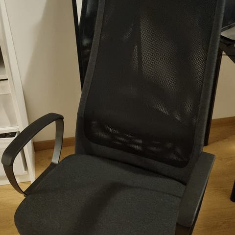 Todella hyvässä kunnossa. Vaikka jo muutamia vuosia vanha niin ollut melkein käyttämättä. Ilmeisesti siis Ikean Markus tuoli mutta istuin osa on keinonahkaa. Siinä on joku tahra.