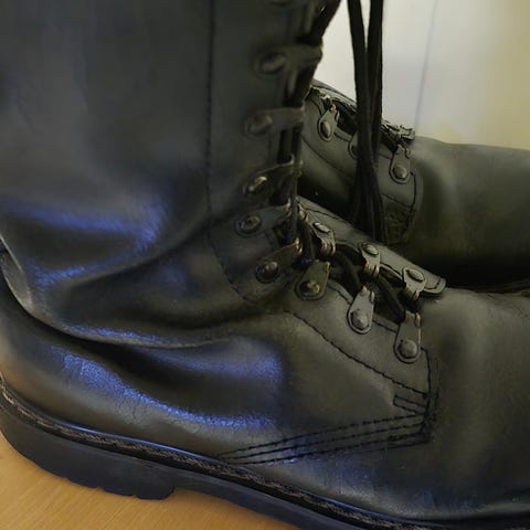 Tässä army tyylin vuorettomat, pitkävartiset maiharit. Aitoa nahkaa.