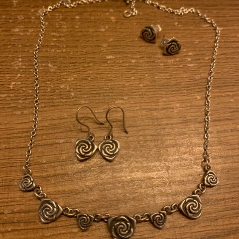 Kaunis korusetti jota ei enää kaupasta saa. Korut on hopeaa ja lumpeenkukan keskellä helmi. Settiin kuuluu kaulakoru, rannekoru ja korvakorut.