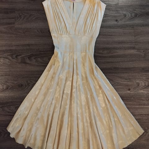 Myydään Kaffen ihana voin värinen / hunajan värinen / vaalea beige / vaalea bees naruolkaiminen juhlamekko/ juhlava kapeahko mekko. Pari kertaa päällä ollut, mutta lasten myötä ei enää mene päälle. 90-luvun lopulta, joten aitoa vintagea ja todella retro ja muodikas nyt.