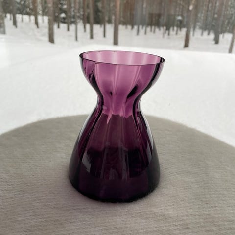 Uudenveroinen ja ehjä taidelasi maljakko Hyasintti kork.13,2cm.ja halk.10,5cm.