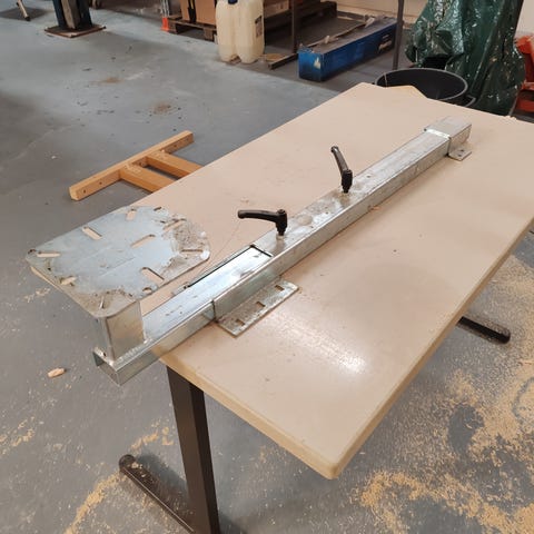 Pakettiautosta irroitettu ruuvipenkki jonka saa ulos autosta