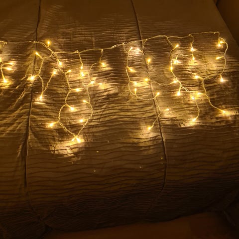 Musta itse tehty valoryijy led-valoilla. Koko 140 x 40cm.