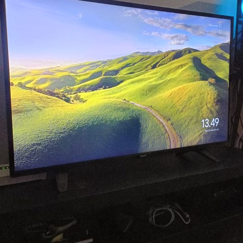 Hdmi liitäntä, digiboxsilla kanavat näkymään tai pelinäytöksi. Kuvassa seinällä, mutta pöytäjalka löytyy.