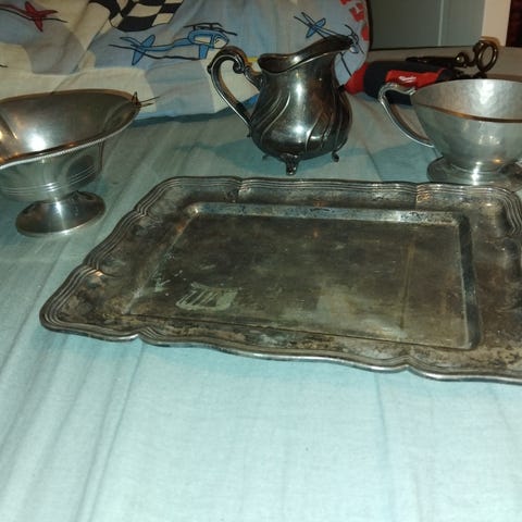 Myyn pois 1989 vuoden kotimaiset käyttämättömät kauniit tina-astiat, kauniit käsinkaiverrukset S&K.