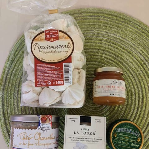 Voit tilata eri kokoisia settejä pakattuna lahjapakkauksiin sellofaaniin.