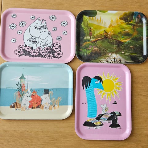 Tarjotin Muumi 20*27 cm, Halaus, Mäenlasku tai Rantapäivä