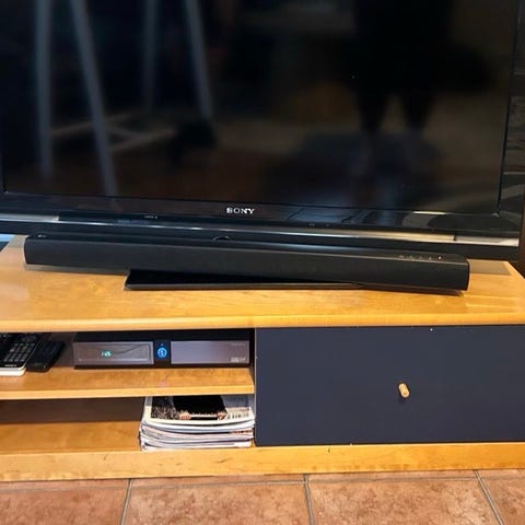 Iskusta ostettu lasinen TV-taso.