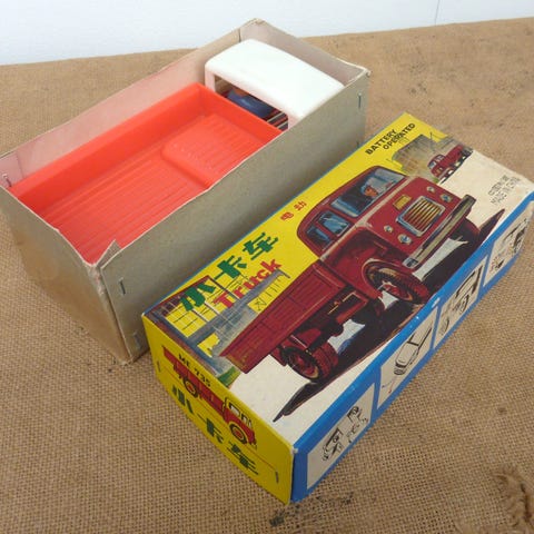Hieno vihreä iso peltinen kuorma-auto. Leikkiauto. Vintage