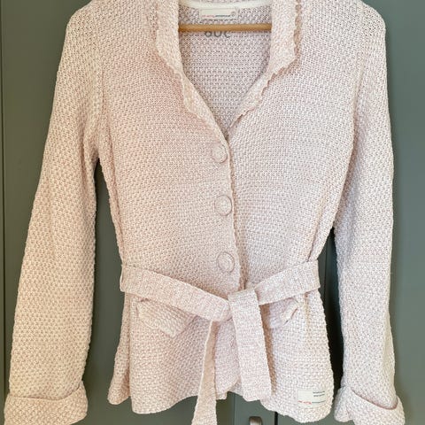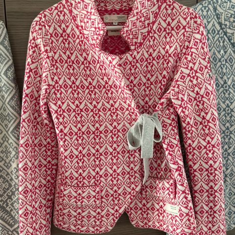 Kaunis vaaleanpunainen sinisellä rusetilla koristettu neuletakki