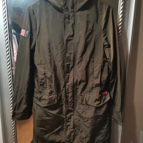 Myydään Superdryn vihreä parkatakki, kokoa XS. Edessä vetoketju ja napitus. Irrotettava karva hupussa. Kiristysmahdollisuus (napit) vyötäröllä. Teddyvuori, mutta hihoissa ja takin alaosassa kiiltävä kangasvuori.