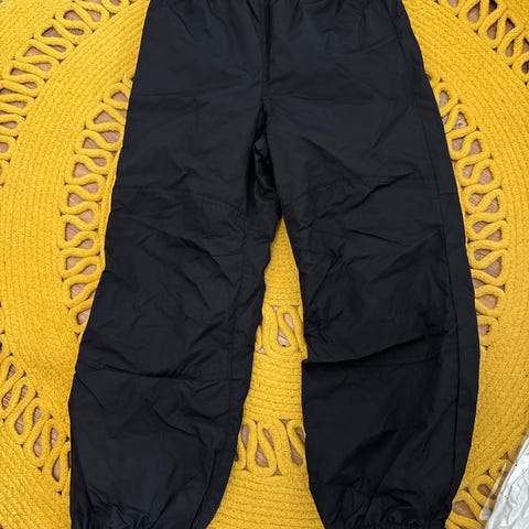 Myydään lähes käyttämättömät vedenpitävät mustat lasten kuorihousut koossa 128cm. Merkki Kappahlin Kakx, tarkemmat tuotetiedot tässä: