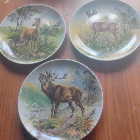 3 kpl seinälautasia. Messinki, suht painavia. 17.5 cm halkaisija.