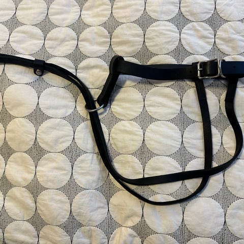 Vähän käytetyt nahkaiset vedonestovaljaat. Koko on 50 mutta se tarkoittaa pannan kokonaispituutta. Menee koiralle jonka kaula noin 34-45cm.