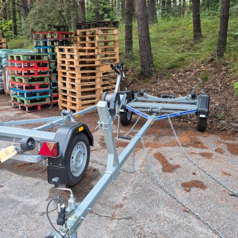 Traktorillakin vedettävä sora rekan perä vaunu ilman lavaa. Tästä saapi tosi tukevan trailerin isommallekin purje veneelle. Rungon pituus n.8m + aisa n.4m.