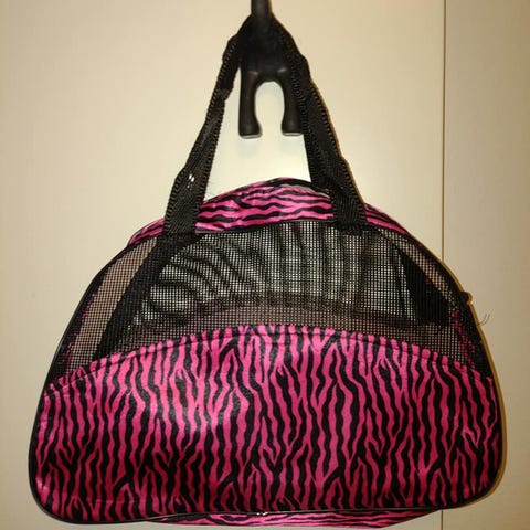 Uutta vastaavassa kunnossa oleva hohtavakankainen laukku olkaimilla.