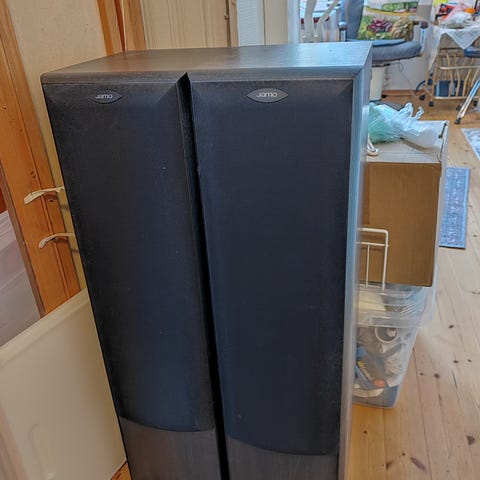 TI-hifiharrastajalle hieman erilaiset pienet kaiutinkotelot. Sivut mattapintaista valkoista melamiinia ja kulmat ruskeaa mosaiikkikuvioista.