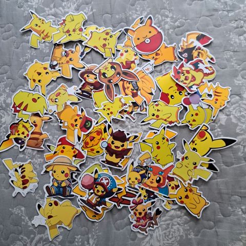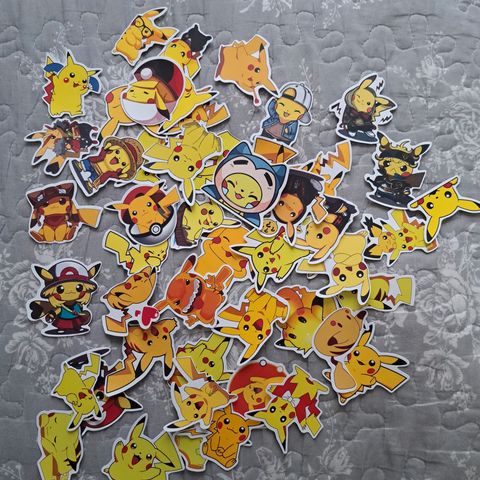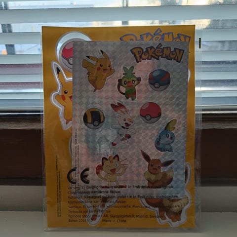 Kuvan tarrat. Pokemon on muropakkauksen mukana aikanaan tullut pieni tarravihko. Tarrat japanista.