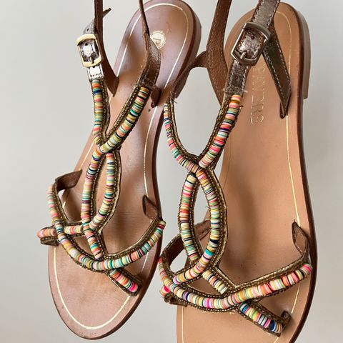 Myydään käyttämättä jääneet juhlavat sandaalit koko 37. Ostettu Espanjasta, merkki Blogger. Päällisessä kimallusta, korko hauskan kartiomainen.
