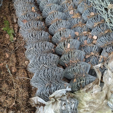 3 mm kuumasinkitty teräslangasta valmistettu verkko, loppuosa rullasta käyttämätön.