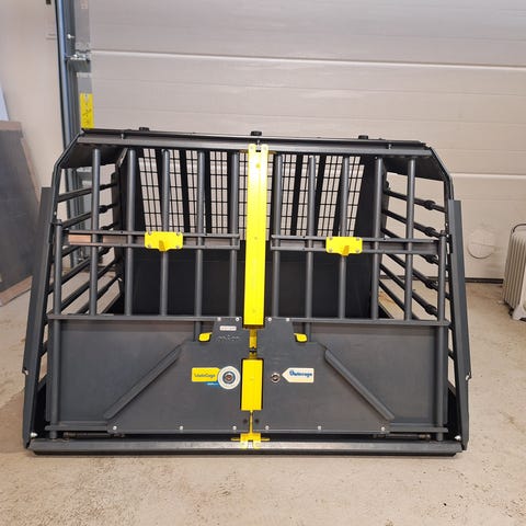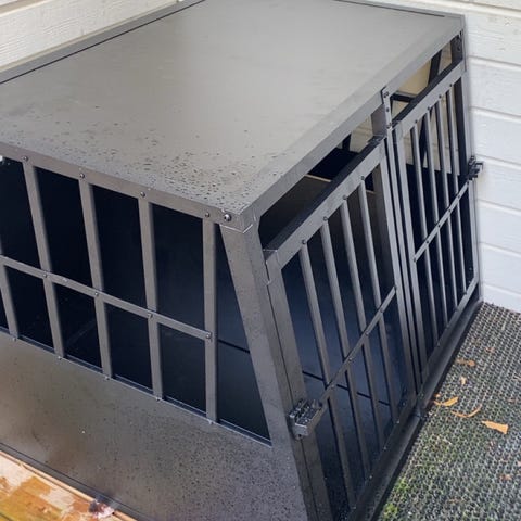 Laadukas, hitsattu ja polttomaalattu J.Vartiainen Oy:n valmistama Subaru vm. -11 mitoilla tehty koiran kuljetushäkki kahdelle koiralle. Pohjan mitat leveys 103,5cm, syvyys 80cm, korkeus 73,5cm. Väliseinä on irroitettava ja häkissä myös varapoistumistie takapenkin suuntaan. Kahdella ovella. Lattia, väliseinä ja sivujen alaosat vaneria. Kunto hyvä. Tehty Subaru Foresterin peräkontin mitoilla, käy myös isompikonttiseen autoon. Ei sovi ykköskoppaiseen Volvo XC60:een. Vain nouto. Koirahäkki koirankuljetus koiratarvikkeet.
