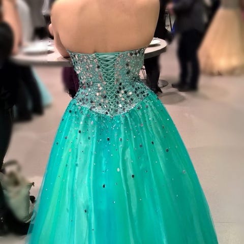 Hyväkuntoinen mekko esim. vanhojen tansseihin. Ei näkyviä