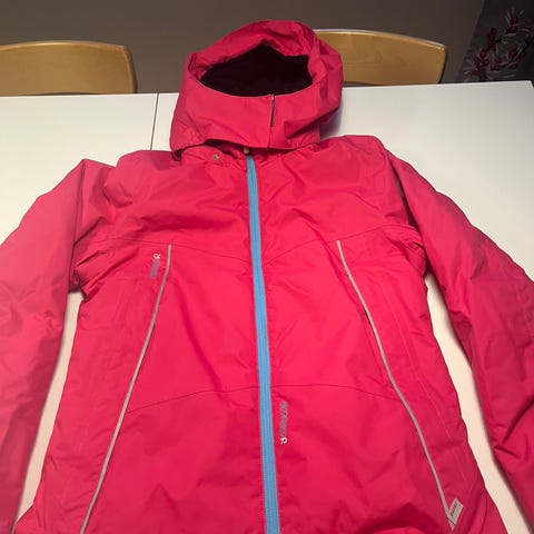 Vettäpitävä valkoinen Reiman toppatakki karvareunaisella hupulla.