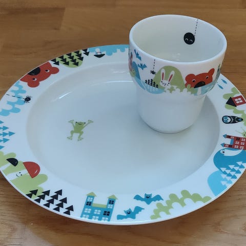Arabia Lysti lasten mukit (2 kpl), lautaset (2kpl) ja iso lautanen