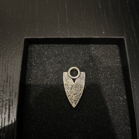 Noin 100cm pitkä ketju ja riipus on 4,5cm pitkä ja 2,5cm leveä