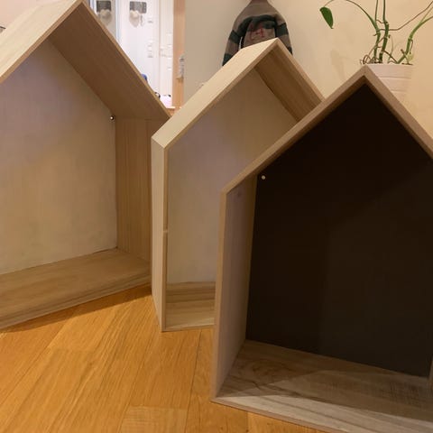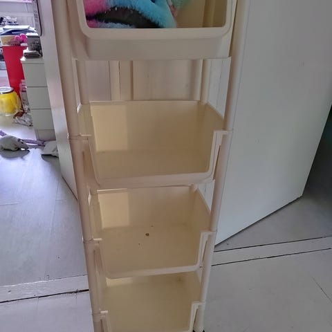 Myyntiin meille nyt tarpeeton hylly. Muutamasta naulakosta maali kulunut, mutta helppo korjata.