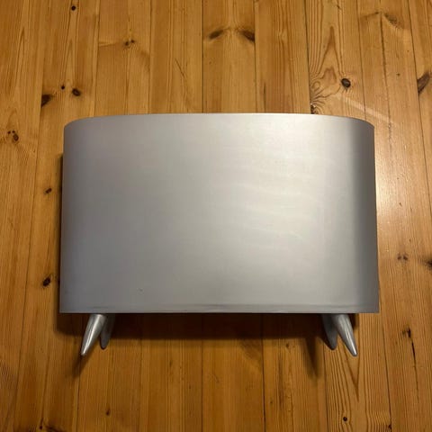 Metallinen seinään / oveen kiinnitettävä lehtine. Ikea Skrissel. L 33 cm, K 77,5 cm, S 8 cm.