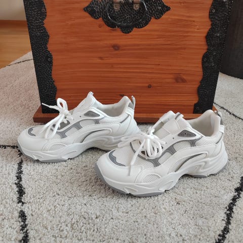 Hyvä käytetty kunto. Kengässä on käytön jälkiä (katso kuvat). Nauhat ovat ehjät. Nämä lenkkarit ovat edelleen mukavat ja niissä on paljon käyttöikää jäljellä!