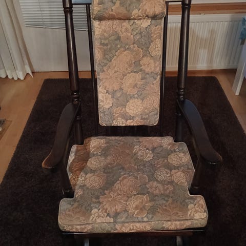 Myyn tarpeettomana kuvienmukaisen hyväkuntoisen jousikeinun. Massiivikoivusta valmistettu. Hyvä ja turvallinen keinutella. Soveltuu myös senioreille tukevan rakenteensa ansiosta. Ei nitise eikä muuta sanomista keinussa kuin käsinojien päissä pienet värikulumat. Keinutuolin istuinkorkeus 49cm ja syvyys 48cm. Istuinpehmusteen paksuus n. 6cm. (Hinta uutena reilu 600e). Huoneen valot aiheuttavat pieniä värieroja pehmusteisiin ja puuosiin.