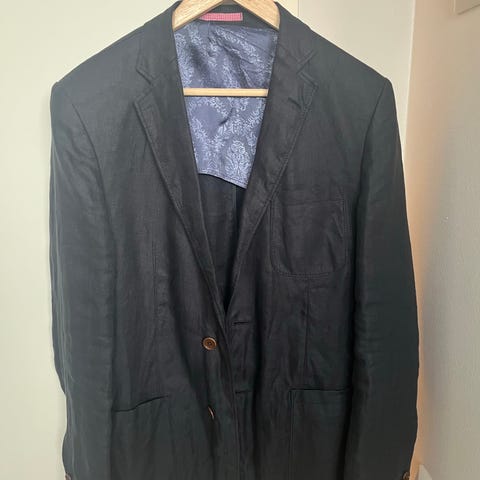 Myydään kuvien mukainen rusehtavan harmaa pellavasekoitebleiseri. Takki on mielestäni hyväkuntoinen, ei näkyvyä tahroja. Selässä takasauma on hieman venynyt/auennut, ks. kuvat. Tästä syystä kunto kohtalainen ja huomioitu hinnassa. Koko on 50, ja mielestäni tämä ei ole ihan niin hoikalle tehty kuin monet Sandin bleiserit, mutta on mielestäni yleisesti enemmän kokoa 48.
