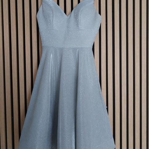 Zazabellla Dazzling kimaltava vaaleansininen rippimekko / juhlamekko koko noin 38-40. Ollut käytössä kuvan tytöllä, joka käyttää vaatteita koko S/M. Takanyöreissä on vielä tilaa säätää leveämmälle, joten menee L/XL -kokoiselle neitokaiselle myös moitteettomasti. Rintaosat ovat vahvistetut kupit, joten rintaliivejä ei tarvitse tämän mekon kanssa, sillä nyörit kiristämällä yläosasta saa napakan! Mekon vuorikangas on valkoinen ja siinä sisäpuolella etuosassa vain hieman jälkeä kasvopuuterista. Ei haittaa menoa eikä näy ulkopuolelle. Uusi omistaja voi halutessaan pyyhkiä/pestä sisäpuolta käsipesuna. Mekko on muuten täysin puhdas ja moitteettomassa kunnossa. Kangas on jämäkkää ja pysyy hienosti ryhdissä!